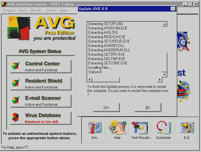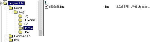To correct this, copy the update directory from the cd into the Grisoft/Avg6